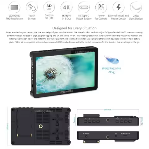 FEELWORLD F5 Pro V4 6 Inch on DSLR Camera Field Monitor Touch Screen 3D LUT FHD1920 1080 4K HDMI Video Focus Assist for Gimbal
