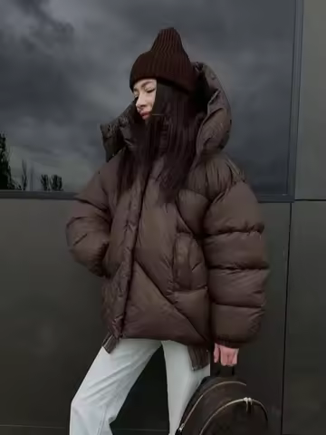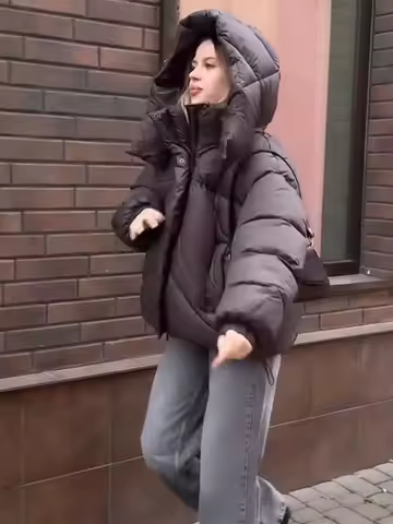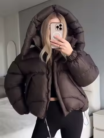 Women Casual Cotton Jackets Hooded Stand Drop Shoulder Puffy Puffer Solid Short Jacket Daily Street Lady Autumn Winter 2025 Coat