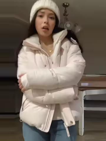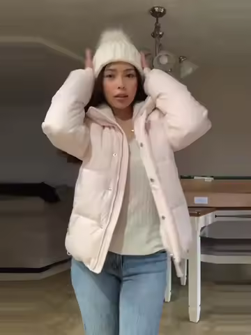 Cute Women's Pink Puffer Jacket Coat with Faux Fur Lining Hooded Warm Winter Outerwear Female Casual Daily High Street Outfit