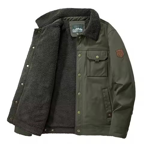 Men 2025 Winter New Fleece Thick Warm Jacket Fashion Casual Windproof Coat Men Autumn Outwear Outdoor Fur Collar Jacket Men