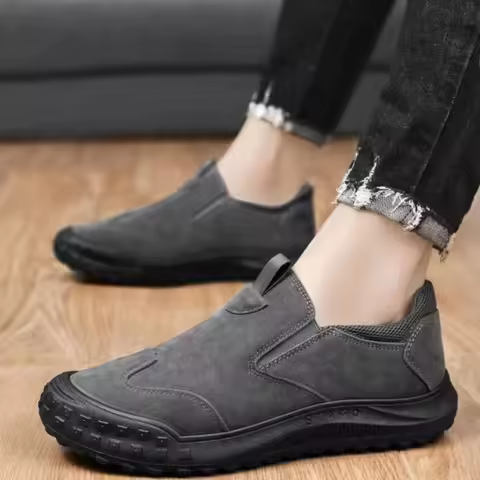 Men Sneakers Retro Suede Leather Casual Shoes Non Slip Driving Shoes for Men Slip on Loafers Low-top Safety Work Shoes