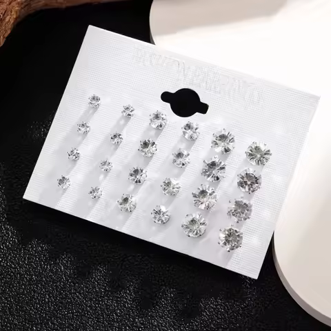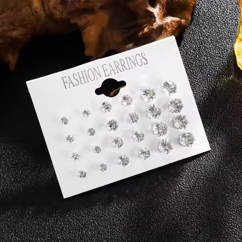 New 12 Pair/Pack White Shiny Wedding Stud Earrings Set For Women Men Crystal Jewelry Accessories Oorbellen Jewelry Earrings
