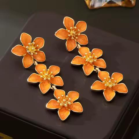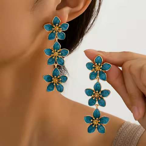 Korean Colorful Enamel Flower Drop Earrings for Women Retro Metal Long Floral Temperament Earrings Jewelry Holiday Party Gift