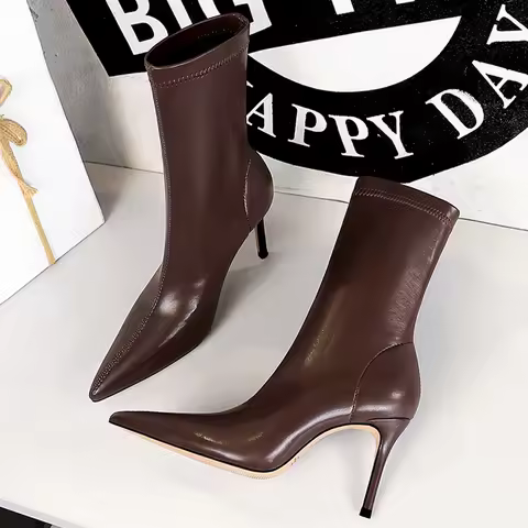BIGTREE Shoes Pu Leather Boots Women Ankle Boots Sexy High-heel Boots Autumn Winter Shoes Short Boots Plus Size 43 Women Heels