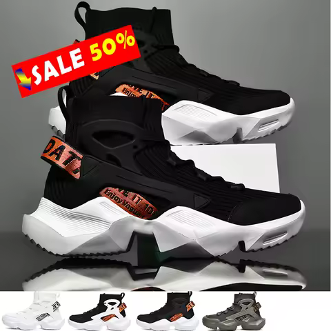 New Men Boots Mesh Fabric High Top Marathon Sports Running Shoes Breathable Lightweight Comfortable Athletic Nonskid Sneakers