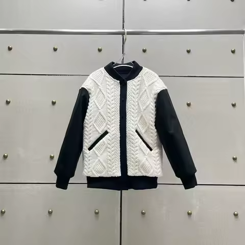 Wool Blend Women's Down Jacket Y2k Leather Patchwork Knitted Duck Down Filled Thickened Warm Down Jacket 2025 Winter New