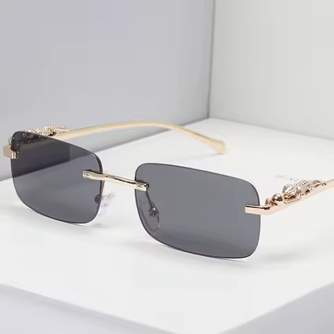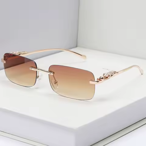 Classic Rimless Sunglasses Men Women Fashion Leopard Decoration Small Sun Glasses Stylish Frameless Driving Travelling Shades