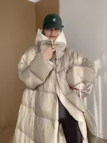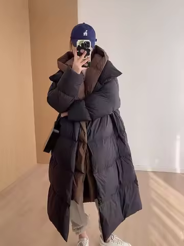 Winter New White Duck Down Hooded Fake Two Piece Down Jacket Women's Long Knee Down Jacket Winter Women's Warm Coat Pike Coat