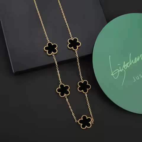 INS Hot Sale Stainless Steel Five Laef Flower Clover Bracelet Jewelry Set Necklace Earrings For Woman Daily Wear Brand Jewelry