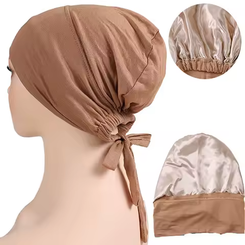 Double Layer Modal Satin Hijab Cap Islam Undercap with Tie Bonnet Instant Hijabs for Women Turkish Scarves Muslim Turban Bandana