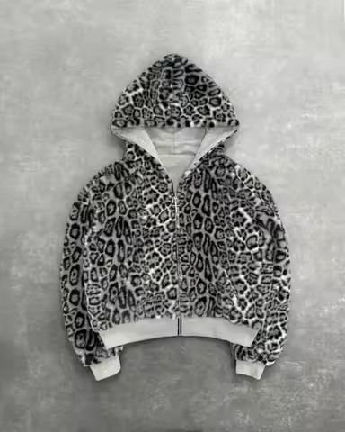 Hip-hop New Two-sided Clothing Harajuku Retro Leopard Print Fashionable Loose Zipper Hoodie Men Street Casual Sweatshirt Women
