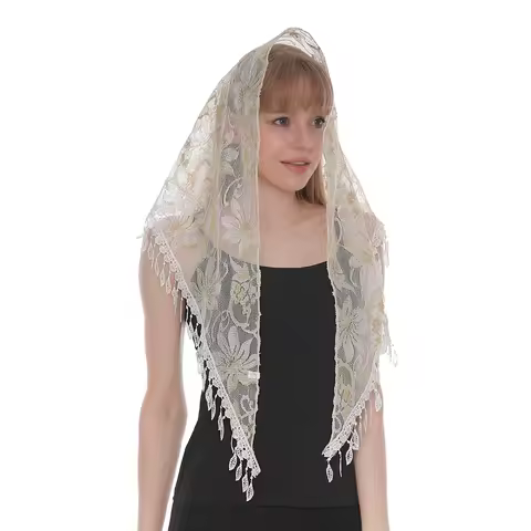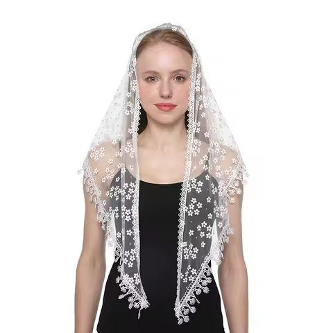 Fashion Church Shawl Lace Veil Polyester Scarf Bandana Church Prayer Wedding Mantilla Chapel White Embroidered Hijab Women Scarf
