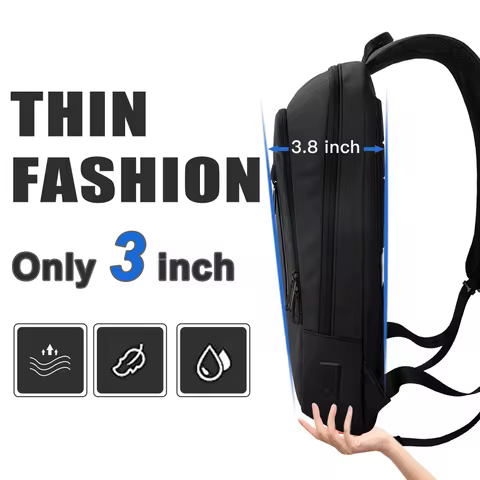Hk Slim Laptop Backpack Men 14 Inch Office Work Women Backpack Thin Business Bag Unisex Black Ultralight Small Backpack School