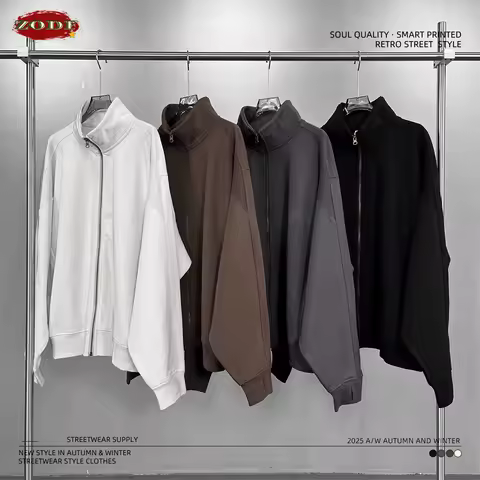 ZODF Fashion 2025 Autumn Man Solid 430gsm Zipper Hoodies For Men Unisex Heavy Weight Loose Stand Collar Coats HY1101