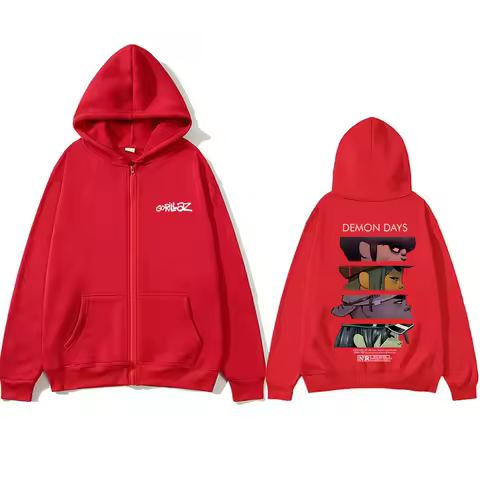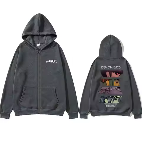 Rock Band Gorillaz Demon Days Eyes Graphic Zipper Hoodie Men Hip Hop Fashion Oversized Zip Up Jacket Unisex Zip Up Sweatshirt