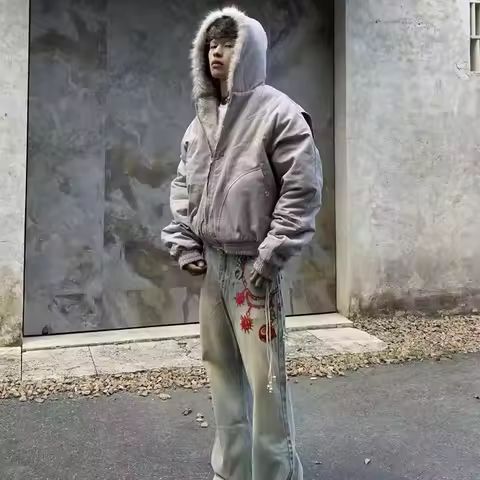 Winter Warm Clothing Men Women Retro Simple Plush Coat Sportswear New Loose Hooded Cotton Jacket Punk Fur Collar Jacket Couple