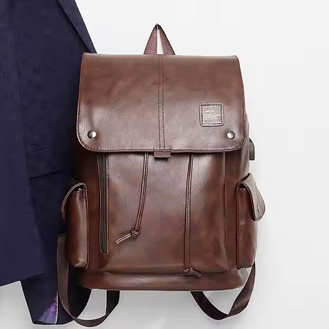 Fashion Luxury Brand Men Backpack Leather School Backpack Bag Fashion Waterproof Travel Bag Casual Leather Book bag Male
