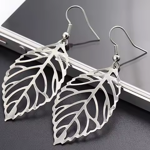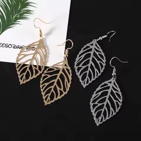Hollow Out Leaf Drop Earrings for Women Trendy Metal Hook Earrings Vintage Golden Silver Color Dangle Earrings Brief Jewelry