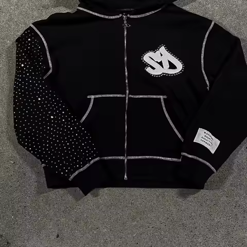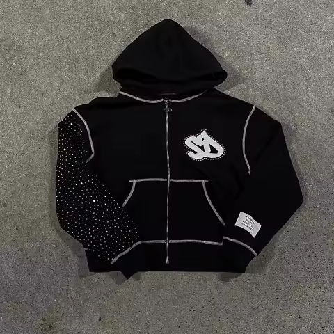 Y2k Streetwear Retro Men Embroidery Personalized Diamond Oversized Hoodie Men Women Harajuku Gothic Casual Sweatshirt