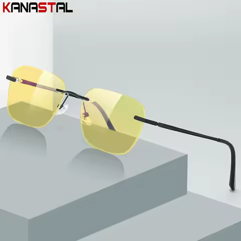 Men Rimless Night Vision Sunglasses Women UV400 Sun Glasses Pure Titanium Eyeglasses Frame Driving Goggles Anti UV Shade Eyewear