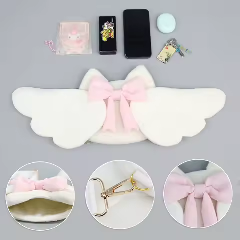 Girls Angel Wings Plush Backpack Japanese Y2k Kawaii Cute Lolita JK Uniform Cosplay Bag For Party/ Birthday Gift/ School Handbag