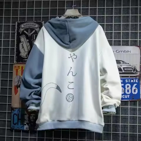 Japanese Style Spring Autumn Men Hoodie Hooded Cute Cat Print Patchwork Teen Hoodies Fashion Anime Harajuku Male Sweatshirt