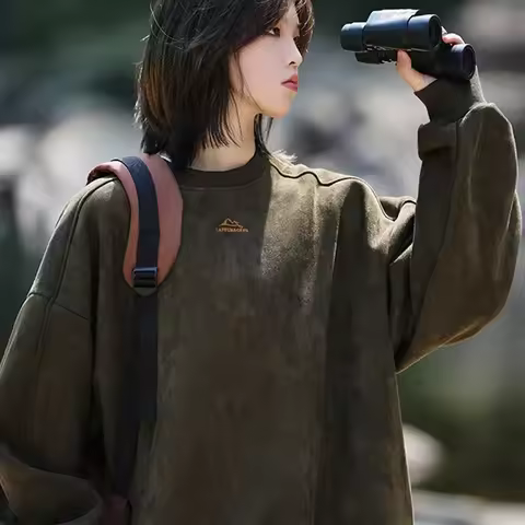 TFETTERS Brand Suede Sweatshirts for Men 2025 New Autumn Winter Clothing Baggy Vintage Pullovers Couples O Neck Oversize Blouse