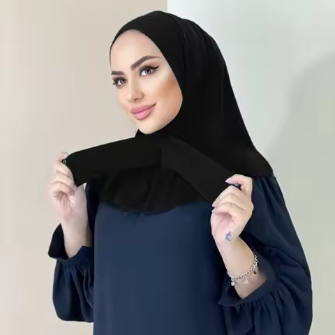 Turkish Ready to Wear Hijab with Snap Fastener Muslim Headscarf Bonnet Plain Neck Head Shawls Women's Turban Hat Islam Under Cap