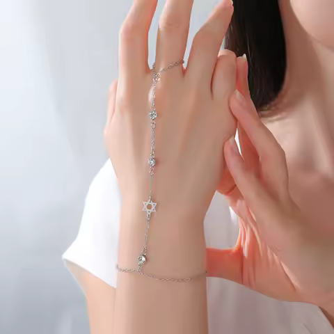 Star of David Charms Bracelet for Women Girls CZ Stainless Steel Bracelet with Chain Finger Ring Judaism Jewelry Amulet Gift