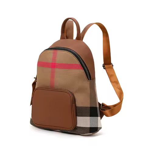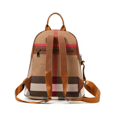 Canvas preppy styleBackpack for Women, Trendy 2025 New Plaid Women's Bag, High-End Plaid Bag, Fashionable Cowhide Backpack