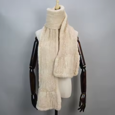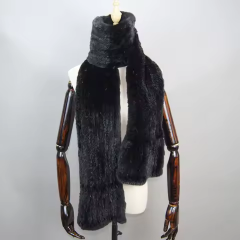 Luxury Women Winter Warm Long Style Natural Mink Fur Scarf For Lady Genuine Fur Neckerchief Handmade Knit Real Mink Fur Scarves