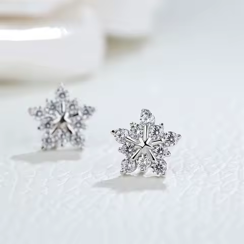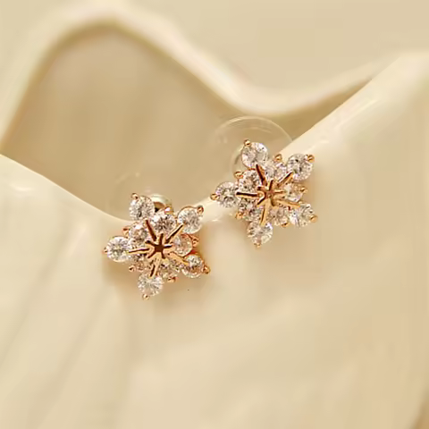 Exquisite Zircon Snowflake Stud Earrings for Women Shiny Rhinestone Crystal Flowers Earring Girl Party Christmas Jewelry Gifts