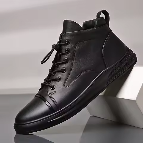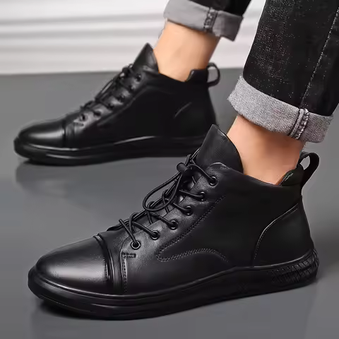 Genuine Leather Men's Casual Shoes Fashion High Top Sneakers Shoes Winter Wool Fur Warm Men Boots Outdoor Snow Non-Slip Footwear