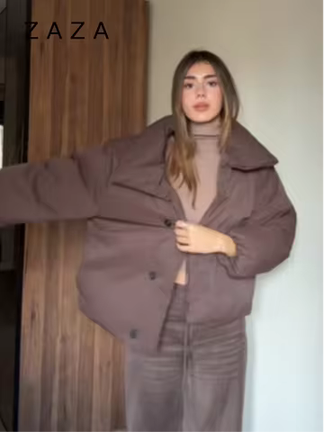 Zaza New Lady Autumn Winter Puffer Jacket High Neck Lace Up Cotton Padded Coat Commuter Vintage Outwear 2025 New Lady Outwears