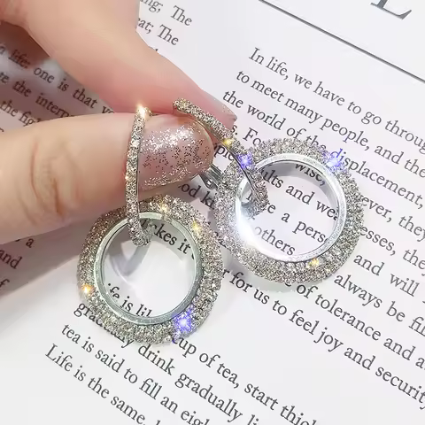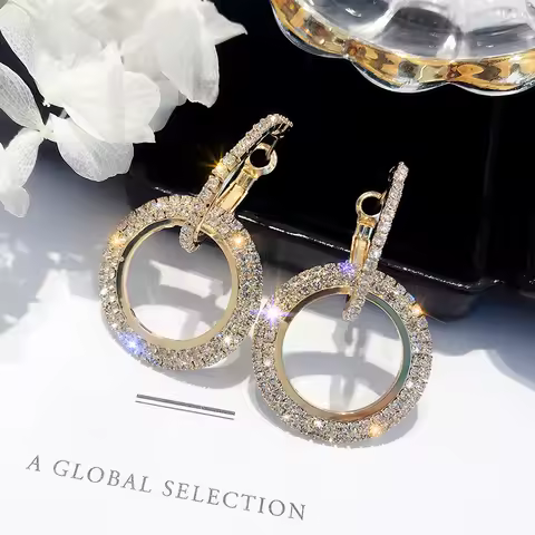 SUMENG 2024 New Fashion Creative High-grade Elegant Crystal Round Gold Color Silver Earrings for Woman Wedding Jewelry