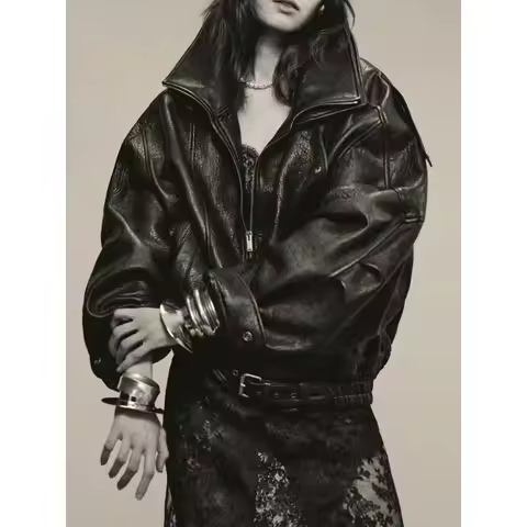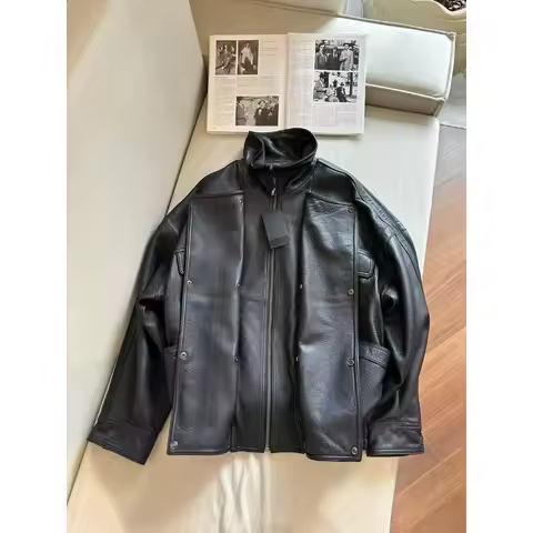 Retro Maillard Style Jacket Leather Jacket Classic Pilot Stand Up Collar Leather Jacket