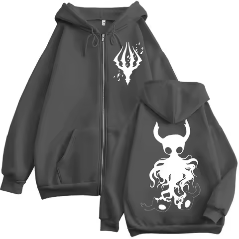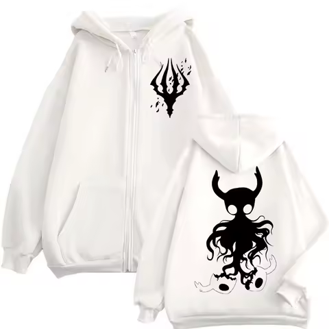 Limited Hollow Knight Game Graphic Zipper Hoodies Gothic Vintage Zip Up Hooded Sweatshirts Men Women Fashion Casual Pullovers