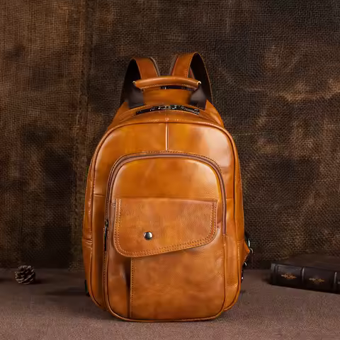 MOTAORA Men's Retro Mini Backpack 2025 New Genuine Leather Multifunctional Backpacks For Men Vintage Handmade Male Chest Bags