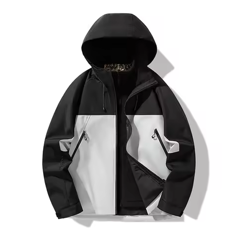 Men Jacket Autumn Winter New Contrast Color Patchwork Male Hooded Coat Windproof Outdoor Sport Three-in-one Man Outerwear