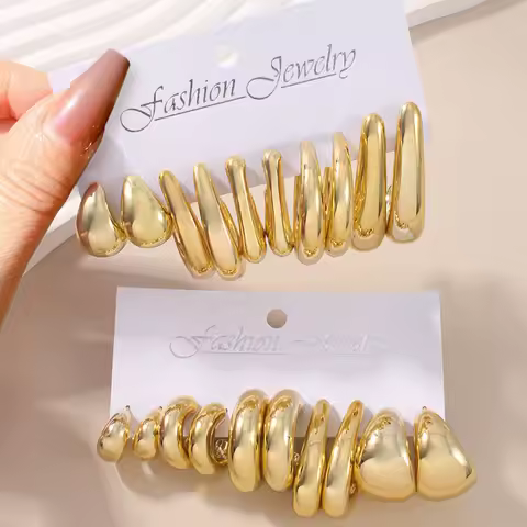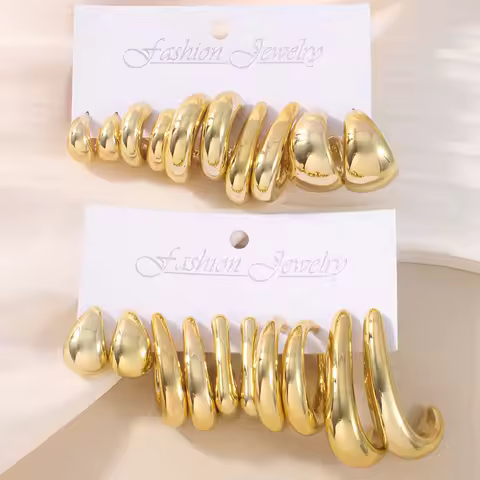 10Pcs/Set Vintage Gold Color C-shaped Hoop Earrings Set For Women Fashion Metal Geometric Smooth Earring Daily Versatile Jewelry