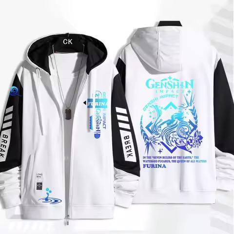 Anime Genshin Impact Furina Hooded Jackets Men Women New Fashion Hoodies Sportswear Boys Girls Teenage Zip Hoodie Sweatshirt