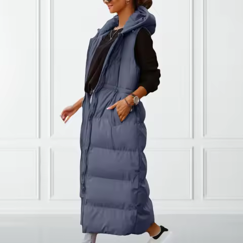 Women Down Coat Jacket Windproof Winter Female Down Jacket Zipper Long Sleeveless Hooded Tight Waist Puffer Coat Winter Vest