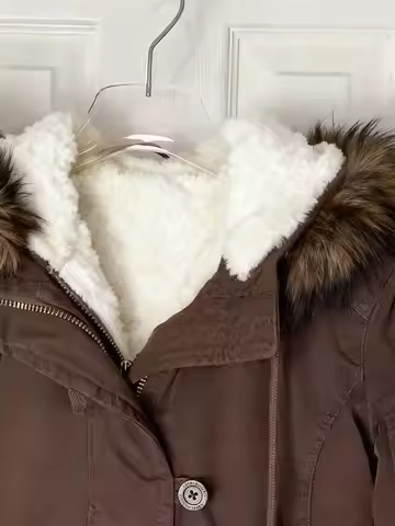 Gothic Fashion American Vintage Y2K Fur Lined Warm Jacket Womens Brown Zipper Hooded Coat Autumn and Winter Warm Casual Coats