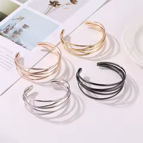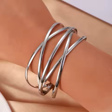 Stainless Steel Multi Layer Crossing Bangles for Women Girls Open Adjustable Arm Cuff Bracelets Special Design Jewelry Gifts
