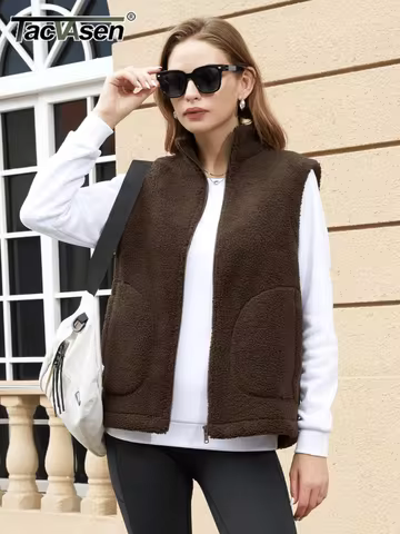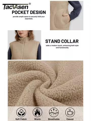 TACVASEN Polar Fleece Vests Women Fall Winter Lightweight Stand Collar Waistcoats Warm Soft 4 Pockets Sleeveless Outwear Jackets