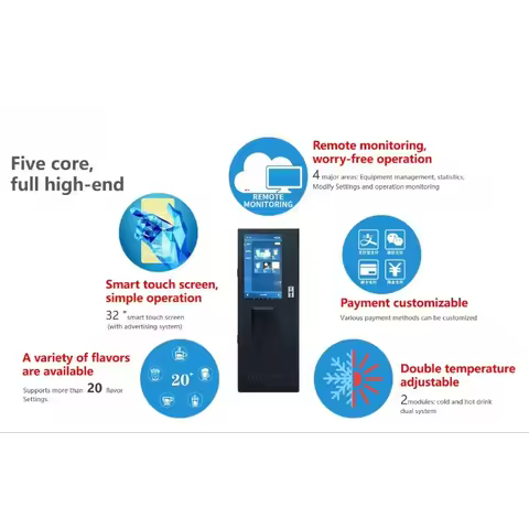Factory Wholesale Price Sale Commercial Automatic Free Standing 20 Flavors Instant Coffee Vending Machine