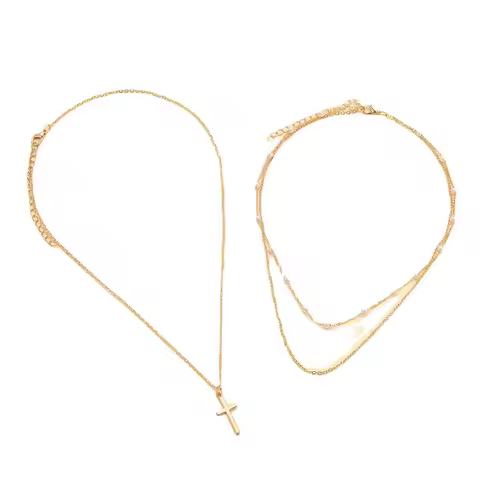 3pcs/set Pearl Necklace Set for Wome Gold Color Fashion Corss Pendant Waterproof Hypoallergenic Collarbone Neck Chain Jewelry