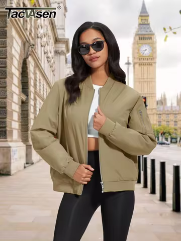 TACVASEN Autumn/Winter Padded Pilot Bomber Jacket Womens Thermal Casual Outwear Windbreaker Waterproof Zip Up Quilted Lined Coat