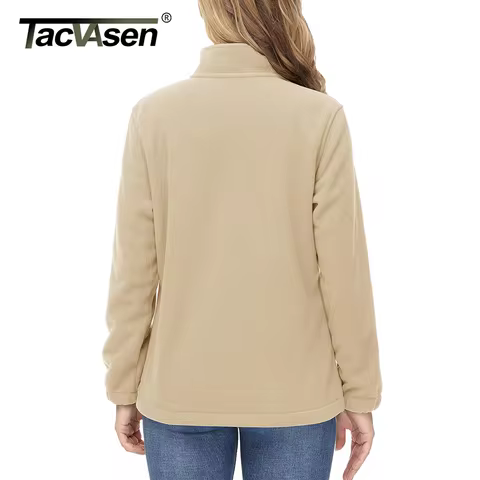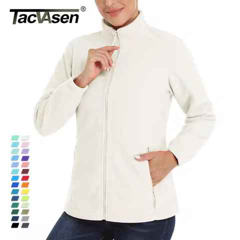 TACVASEN Winter Flannel Jackets Womens Full Zip Up Warm Fleece Jacket Coat Zipper Pocket Casual Jacket Streetwear Outwear Female