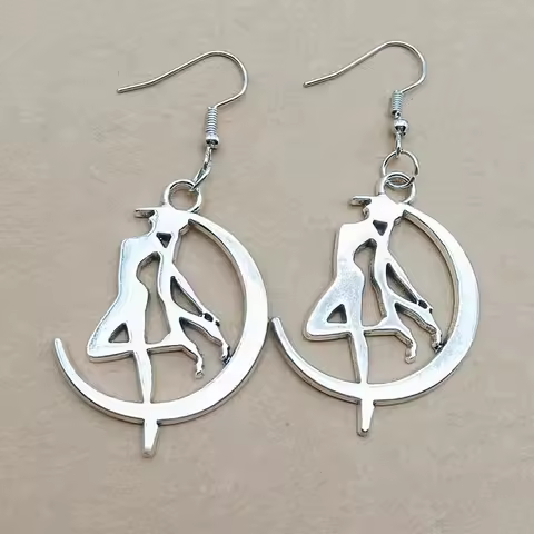 Cartoon Sailor Moon Earring for Girl Cosplay Anime Jewelry Silver Plated Simple Design Moon Shape Drop Earring Women Gift
